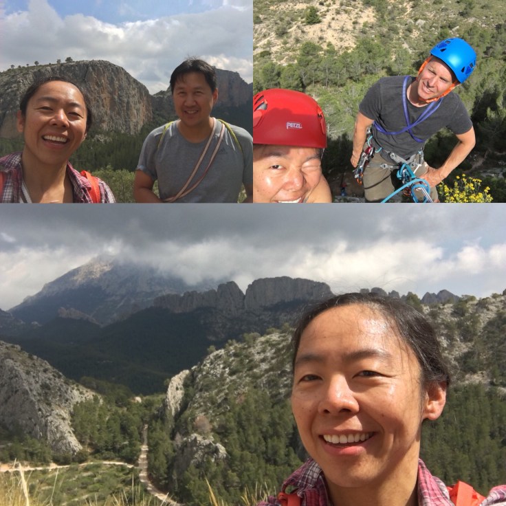 The trip started with a long weekend of climbing at various crags around Alicante. To do a multi pitch was one of my objectives for this first part of the trip. Thanks to Kevin (photo top left), running through the techniques on an easy route then climbed 3-pitch route with me at Sella, the objective ✅!